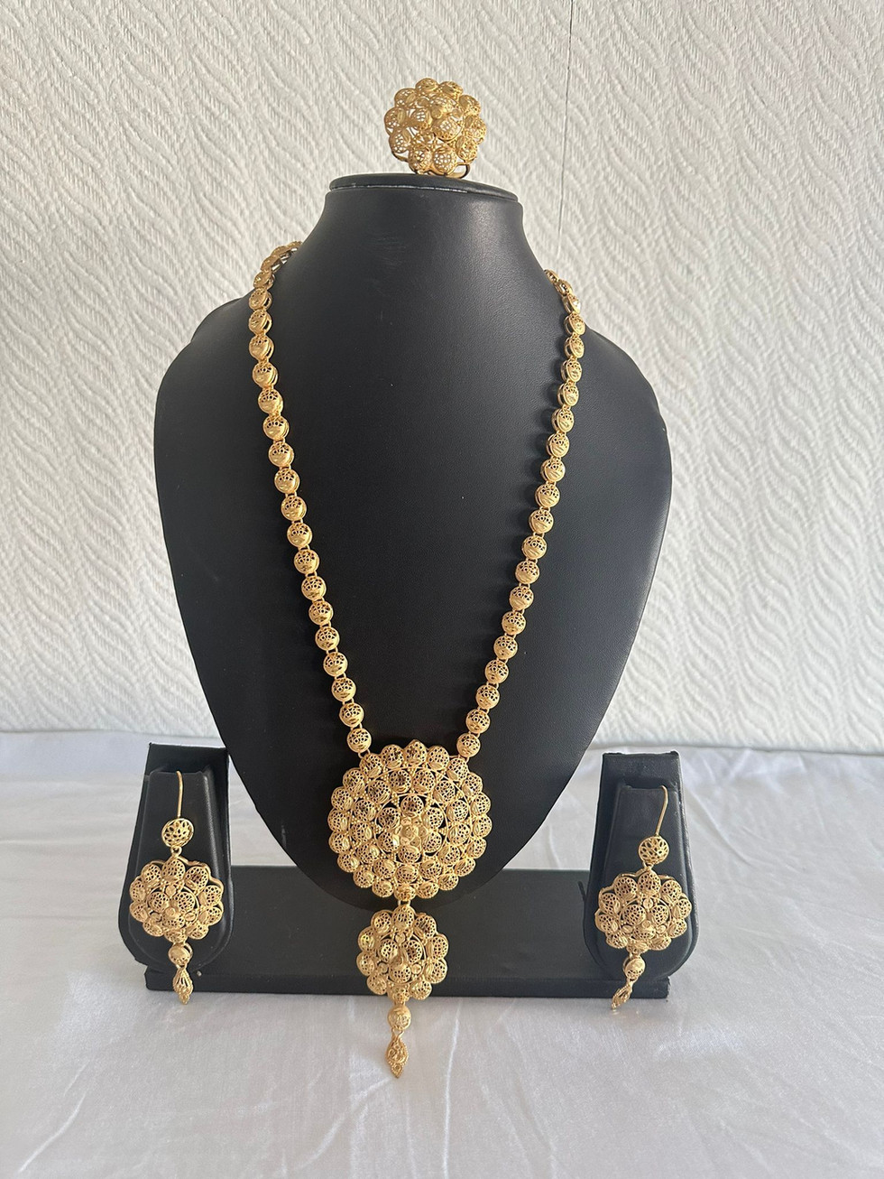 Vårt Gullfargede smykke er en elegant og tidløs kreasjon som tilfører et sofistikert preg til ethvert antrekk. Med sin vakre gullfarge gir det et luksuriøst utseende uten å være laget av ekte gull. Dette smykket er perfekt for både hverdagsbruk og spesielle anledninger, og vil garantert bli et favorittstykke i smykkesamlingen din.